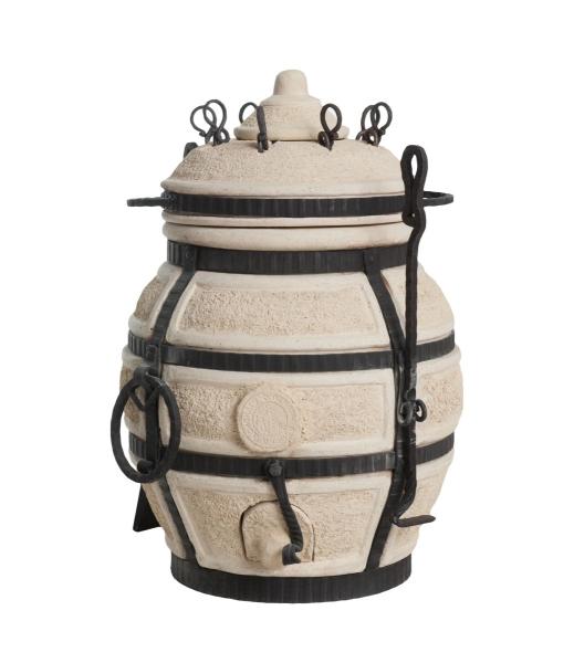 Тандыр сделан из шамотной глины и имеет толстые 5-сантиметровые стенки. За счет этого даже от маленькой вязанки дров жара хватит для приготовления большого количества еды. Другие достоинства модели: красивый дизайн.