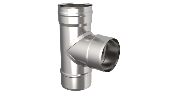 Элемент одностенного дымового канала, предназначен для соединения двух каналов дымохода, может используется, в сочетании с заглушками, как ревизия