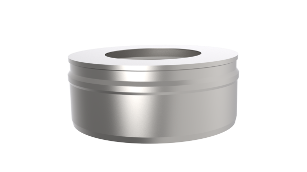 Элемент двустенного дымового канала закрывает концевые отверстия элементов дымохода для фиксации и защиты от атмосферных осадков теплоизоляционного наполнителя.